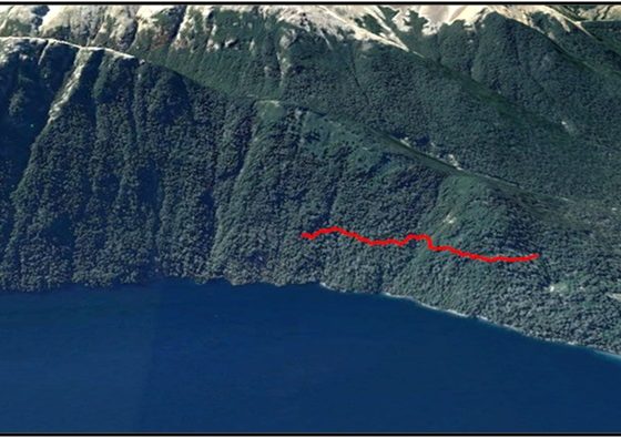 Detalle del camino del Fideicomiso Lago Correntoso y el de Emanuel Ginóbili.